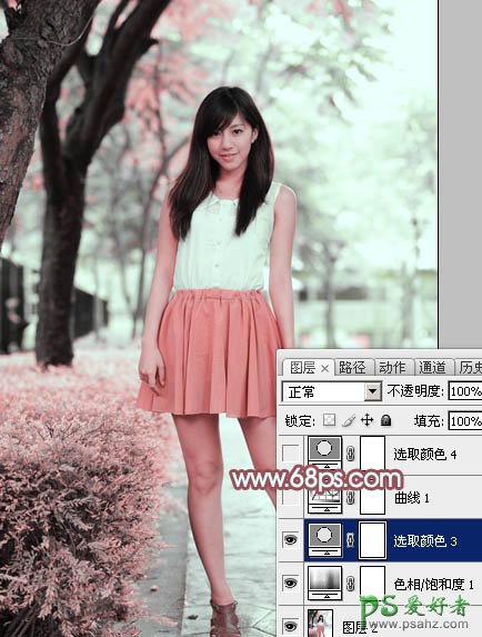 ps街景图片MM调色教程:给公园绿树下的MM调出甜美粉调青红色