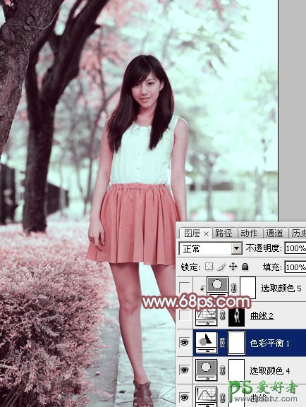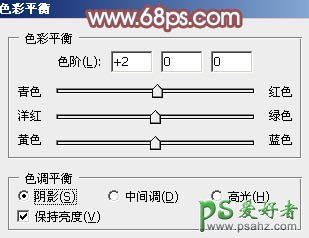 9、创建色彩平衡调整图层,对阴影,高光进行调整,参数设置如图23,24,效果如图25。这一步加强图片暗部及高光部分的颜色。