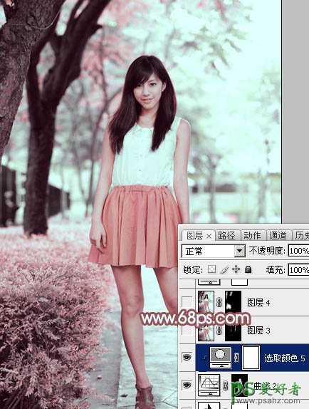 ps街景图片MM调色教程:给公园绿树下的MM调出甜美粉调青红色