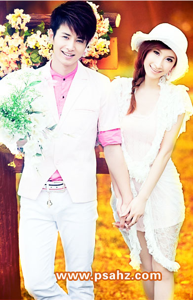 PS婚纱照调色教程:调出80后唯美婚纱午后阳光暖色调