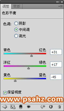 5、添加彩色平衡调整图层,做整体调整,具体如图: