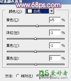 14、创建可选颜色调整图层,对红,白进行调整,参数设置如图30,31,效果如图32。这一步主要调整图层高光部分的颜色。