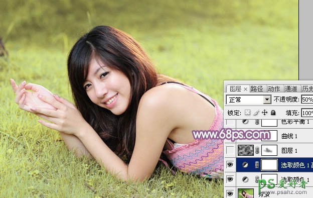 2、按Ctrl + J 把当前可选颜色调整图层复制一层,不透明度改为:50%,效果如下图。