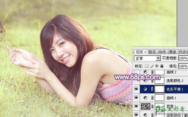 PS调色教程:给公园绿地上自拍的美女写真照调出阳光色彩