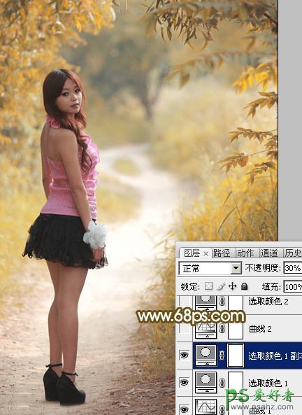 3、按Ctrl + J 把当前可选颜色调整图层复制一层,不透明度改为:30%,效果如下图。
