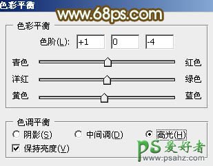 6、创建色彩平衡调整图层,对阴影、中间调、高光进行调整,参数设置如图18 - 20,效果如图21。这一步主要加强图片高光部分的颜色。
