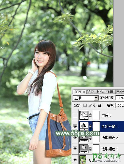 ps绿色版唯美少女写真照调色:调出树林边少女绿色清新效果