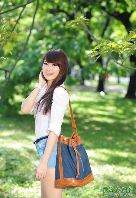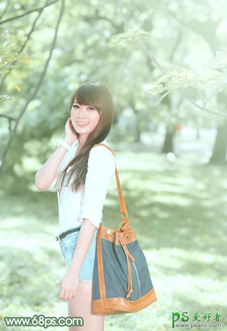 ps绿色版唯美少女写真照调色:调出树林边少女绿色清新效果,唯美绿色风格美女图片调色教程,ps绿色版图片调色,ps绿色版少女外拍艺术照调色,调色的时候先把暗部颜色调得亮一些,照片高光部分颜色进行柔化处理,这样照片的整体颜色就有一种比较唯美的感觉了。