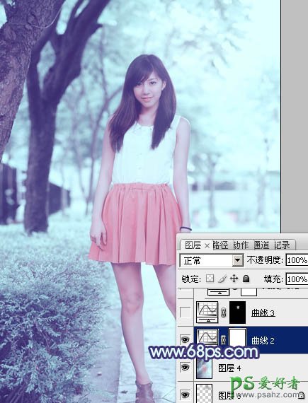 photoshop给甜美的外景美女写真照调出淡调青蓝色效果