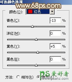 7、创建可选颜色调整图层,对红、黄、绿进行调整,参数设置如图18 - 20,效果如图21。这一步主要把图片中的绿色转为稍淡的黄绿色。