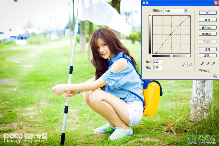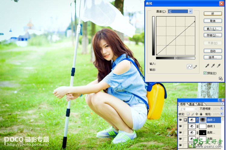 ps粉红色丝袜美女调色:给树林中的小清新美女调出粉红色效果...