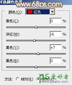 3、创建可选颜色调整图层,对红、黄、绿、青、白进行调整,参数设置如图4 - 8,效果如图9。这一步把背景主色转为黄褐色。