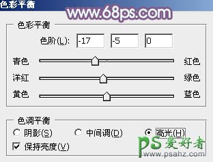 4、创建色彩平衡调整图层,对阴影,高光进行调整,参数设置如图12,13,效果如图14。这一步是减少图片中的红色,并给高光部分增加淡青色。
