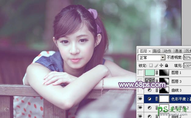 7、按Ctrl + J 把当前色彩平衡调整图层复制一层,不透明度改为:50%,效果如下图。
