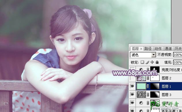 9、新建一个图层,填充淡绿色:#B6ECD2,混合模式改为“滤色”,按住Alt键添加图层蒙版,用白色画笔把右上角部分擦出来,给图片增加高光,效果如下图。