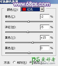3、创建可选颜色调整图层,对红、蓝、洋红进行调整,参数设置如图10 - 12,效果如图13。这一步给图片增加一点红色。