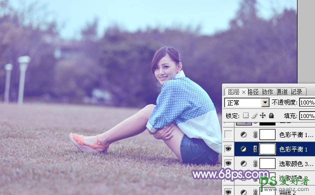 7、创建色彩平衡调整图层,对阴影、中间调、高光进行调整,参数设置如图24 - 26,效果如图27。这一步主要给图片高光部分增加淡蓝色。