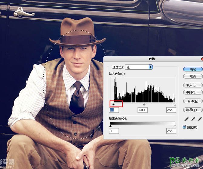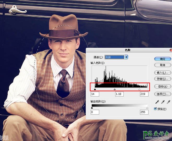 24、执行色阶命令,适当调亮选区内的图像。