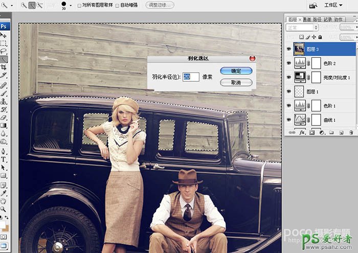 17、盖印图层,用快速选择工具,将图片上墙壁选出来,羽化值为20像素。