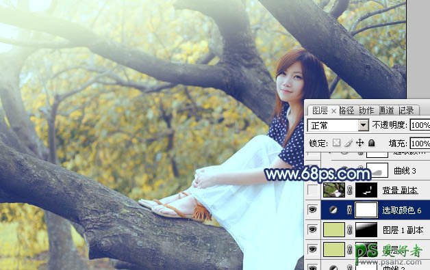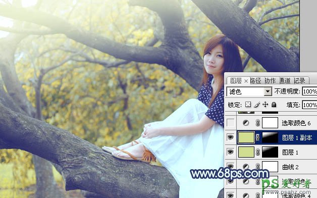 9、新建一个图层,填充黄绿色:#D1DE91,混合模式改为“滤色”,添加图层蒙版,用黑白渐变拉出下图所示的高光效果,如果觉得高光不够明显可以把当前图层再复制一层。