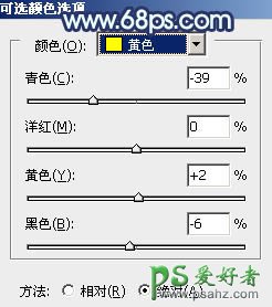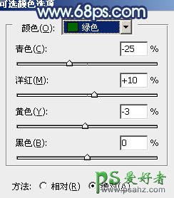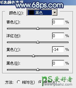 1、打开素材图片,创建可选颜色调整图层,对黄、绿、黑进行调整,参数设置如图1 - 3,效果如图4。这一步主要把背景部分的绿色转为黄褐色,同时给暗部增加蓝色。