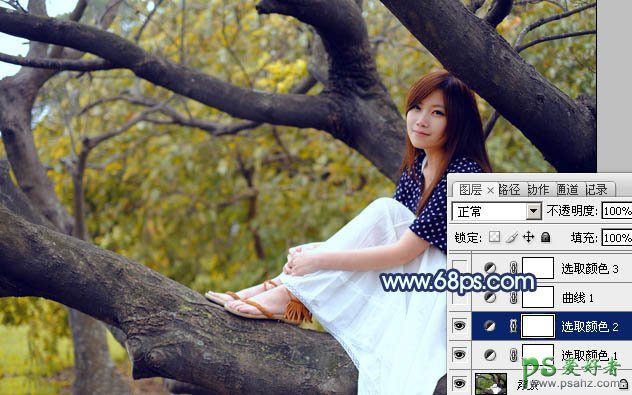 PS给沐浴着晨光的清新少女写真照调出唯美的蓝黄色调