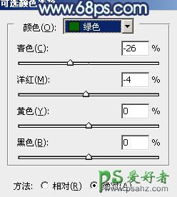 4、创建可选颜色调整图层,对绿、青、黑进行调整,参数设置如图14 - 16,效果如图17。这一步同样给图片暗部增加蓝色。