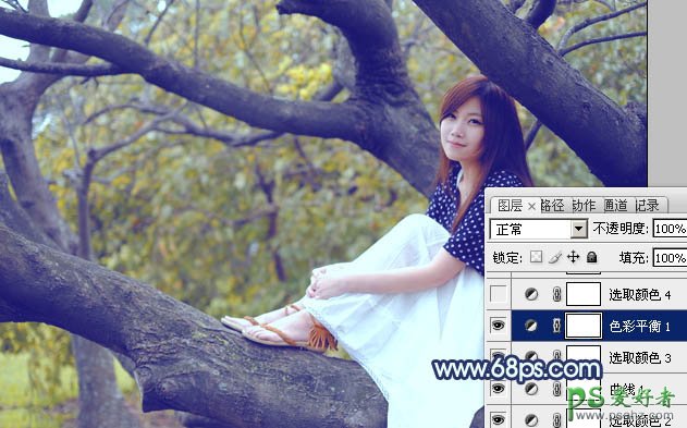 PS给沐浴着晨光的清新少女写真照调出唯美的蓝黄色调
