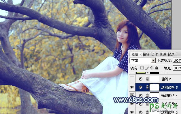 PS给沐浴着晨光的清新少女写真照调出唯美的蓝黄色调