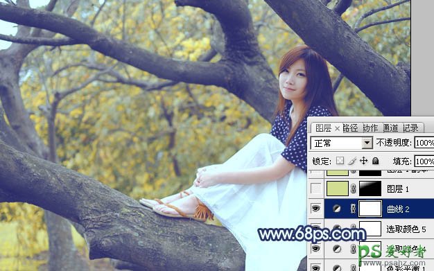 PS给沐浴着晨光的清新少女写真照调出唯美的蓝黄色调