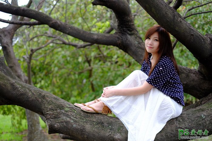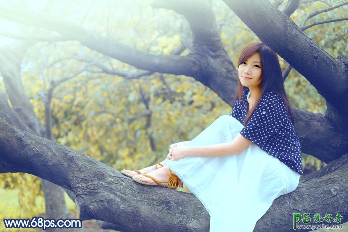 ,美女写真照后期调色,PS给沐浴着晨光的清新少女写真照调出唯美的蓝黄色调,调色的时候可以适当在图片的左上角加上类似阳光效果,再把颜色转为稍微鲜一点的暖色即可。