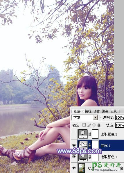 photoshop给河边上自拍的清纯少女艺术照调出可爱的橙黄色
