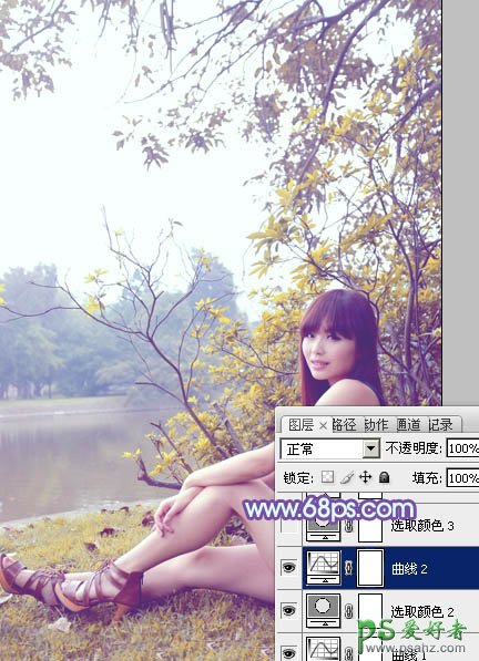 photoshop给河边上自拍的清纯少女艺术照调出可爱的橙黄色
