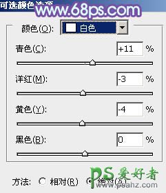 5、创建可选颜色调整图层,对红、黄、洋红、白进行调整,参数设置如图17 - 20,效果如图21。这一步主要给图片高光部分增加淡蓝色。