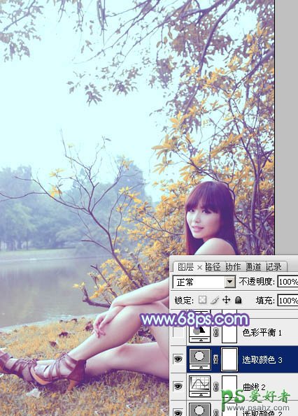 photoshop给河边上自拍的清纯少女艺术照调出可爱的橙黄色