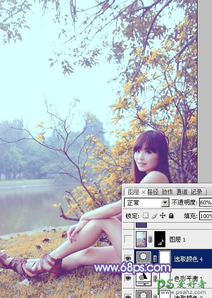 7、创建可选颜色调整图层,对红、黄、蓝、白进行调整,参数设置如图25 - 28,确定后把图层不透明度改为:60%,效果如图29。这一步主要调整图片中的暖色及高光颜色。