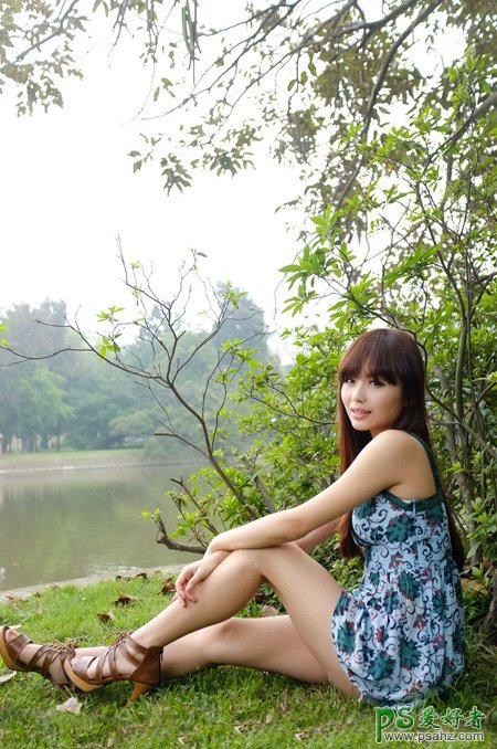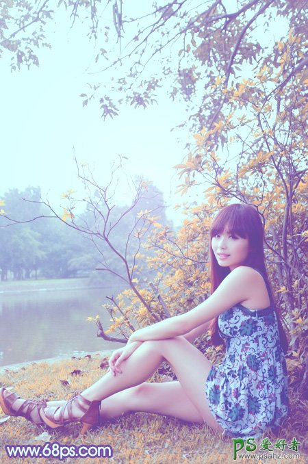 美女图片调色教程,后期调色,ps调色,photoshop给河边上自拍的清纯少女艺术照调出可爱的橙黄色,外拍美女图片美化,我们的调色师在调色的时候一般只把图片中间调部分转为橙黄色,高光部分增加一点淡蓝色,暗部增加暗蓝色即可。
