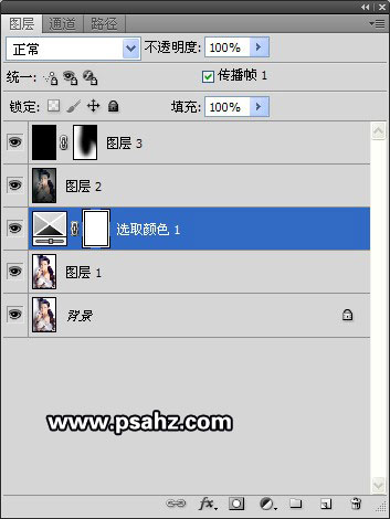 4、新建一图层,填充为黑色,并添加蒙版,选用椭圆选区工具,选中间人物,并执行羽化50px.用黑色画笔填充。