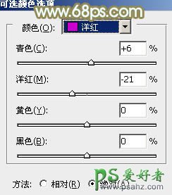 1、打开素材图片,创建可选颜色调整图层,对黄、绿、洋红进行调整,参数设置如图1 - 3,效果如图4。这一步给背景部分增加橙黄色。