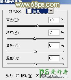 2、创建可选颜色调整图层,对黄、绿、白、中性、黑进行调整,参数设置如图5 - 9,效果如图10。这一步给图片的高光及中间调部分增加青色。