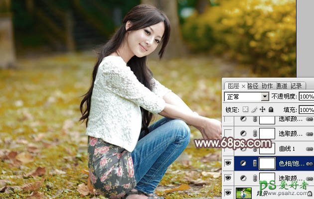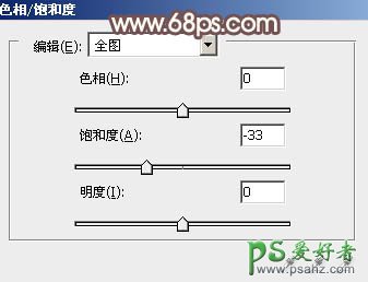 2、创建色相/饱和度调整图层,适当降低全图饱和度,参数及效果如下图。这一步把图片主色转为稍微中性的颜色。