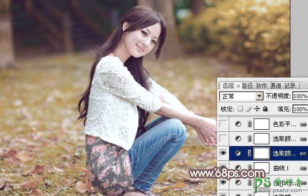 photoshop给淡雅的外拍美女写真照调出古典中性黄色调