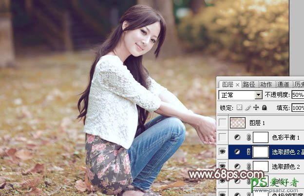 5、按Ctrl + J 把当前可选颜色调整图层复制一层,不透明度改为:50%,效果如下图。