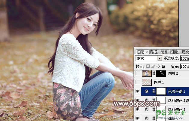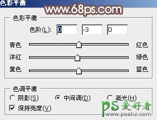 6、创建色彩平衡调整图层,对阴影,中间调进行调整,参数及效果如下图。这一步给图片增加一点暖色。