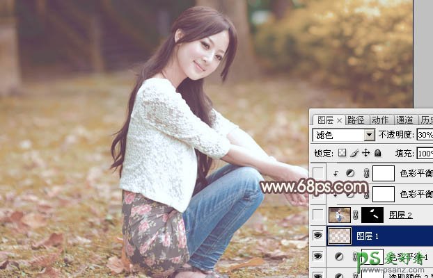 7、按Ctrl + Alt + 2 调出高光选区,按Ctrl + Shift + I 反选,新建一个图层填充红褐色:#CBAE9E,混合模式改为“滤色”,不透明度改为:30%,效果如下图。这一步适当增加图片暗部亮度。
