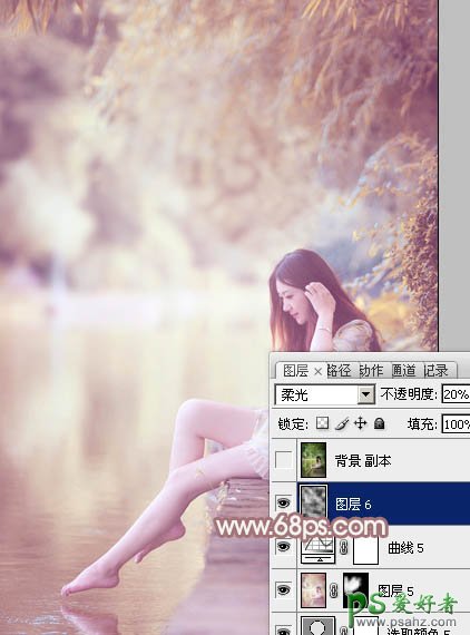 13、新建一个图层,按字母键“D”把前,背景颜色恢复到黑白,执行:滤镜 > 渲染 > 云彩,确定后把图层混合模式改为“柔光”,不透明度改为:20%,效果如下图。