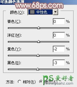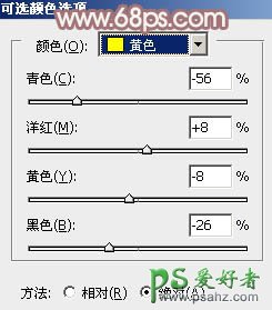 3、创建可选颜色调整图层,对黄,中性色进行调整,参数设置如图7,8,效果如图9。这一步把图片中的暖色稍微调淡。