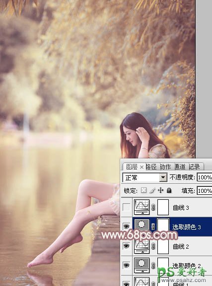 PS调色教程:给盛夏中在池塘里戏水的少女调出唯美的红褐色