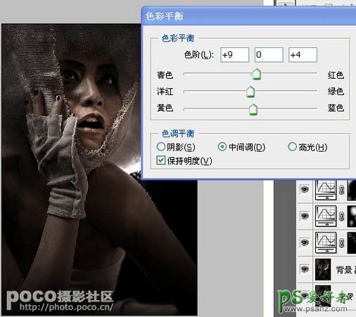 PS调色教程:给可爱美女写真照调出暗青色效果