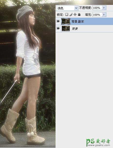 2、把模糊后的图层混合模式改为“浅色”,效果如下图。